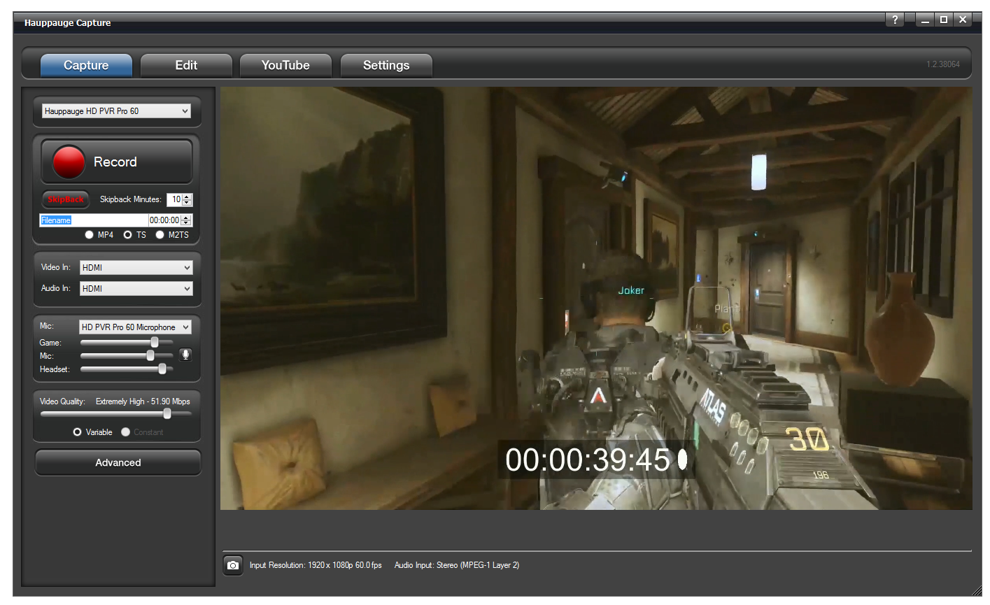 Using Hauppauge Capture application for Windows, HD PVR Pro 60 can record, trim and upload to YouTube. And with the audio mixer, you can individually adjust the recording volume from your headset, microphone and game audio.